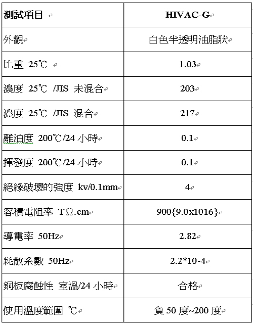HIVAC-G是一種以精練的矽油為基礎並添加癢化矽粉末的潤滑油化合物,所以可用於達到10-6Torr的高真空狀態下
