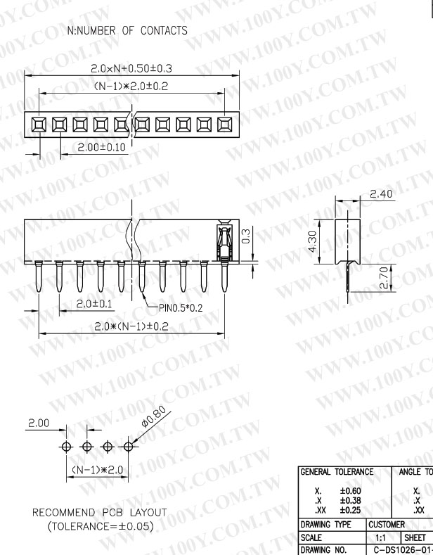 1*7P 排針母座 180° P:2.0mm【ROHS】