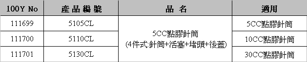 點膠針筒 (4件式:針筒+活塞+堵頭+後蓋)