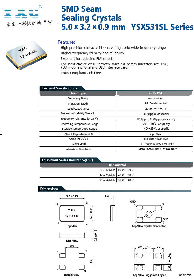 SMD-4P 12.000MHz 5*3.2*0.9mm