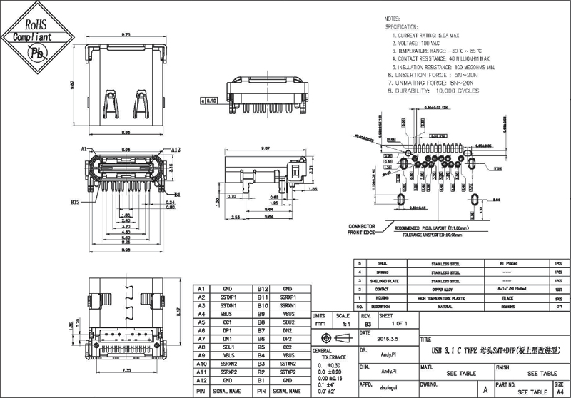 USB3.1 母座插腳式連接器