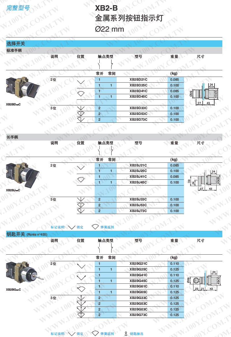Φ22_2段選擇開關 停置 1a1b(1開1閉)