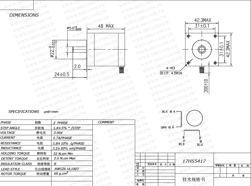 2相步進電機 3.06V/1.7A