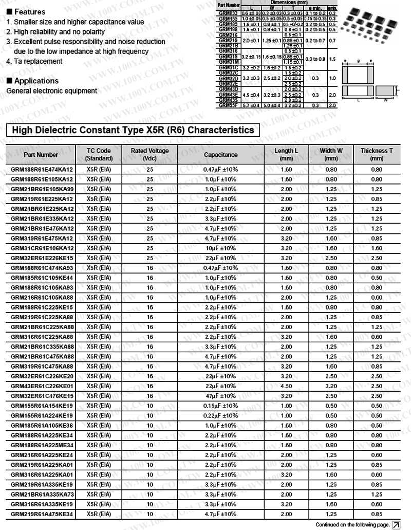 22 µF ±10% 16V 陶瓷電容 X5R 1210 (公制 3225)