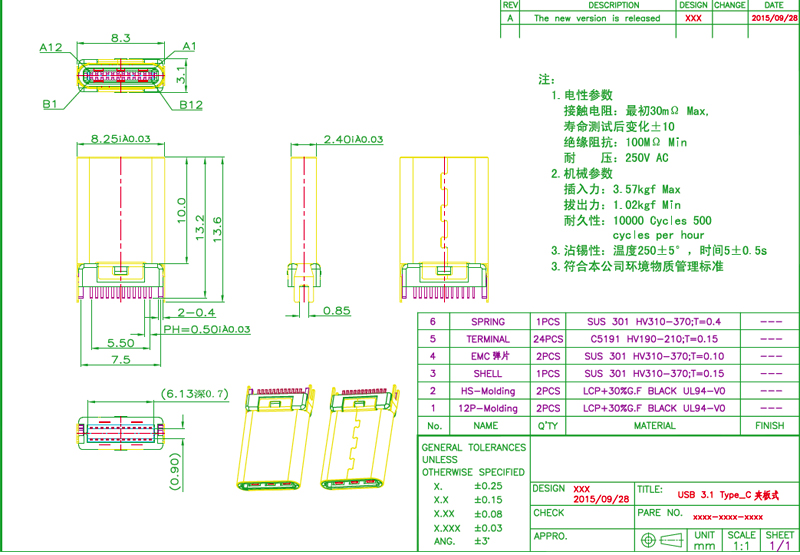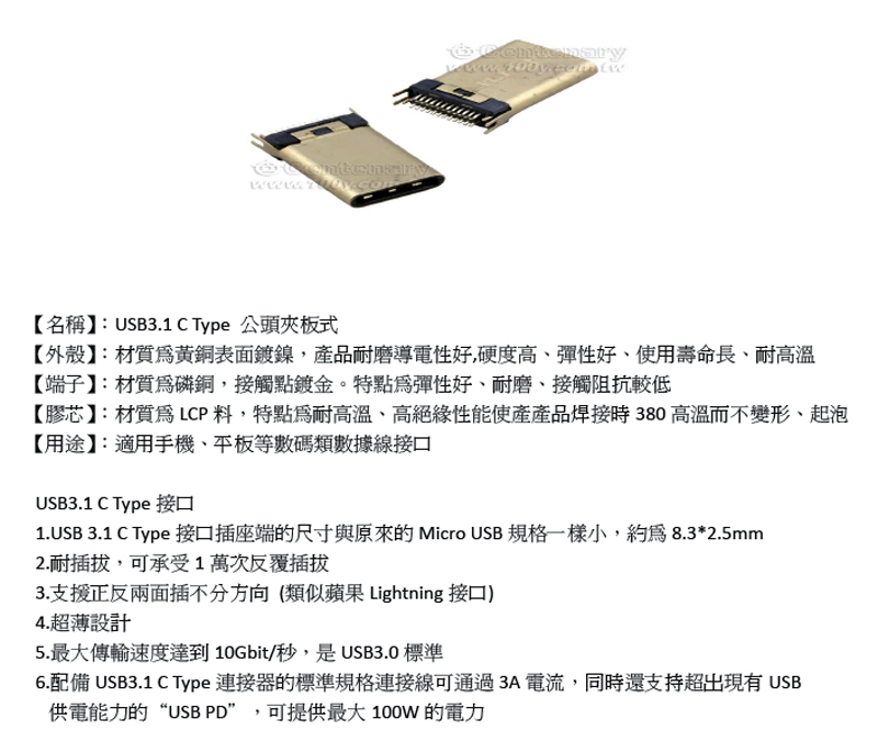 Type-C-24P(M)-夾板0.8mm-外露10mm