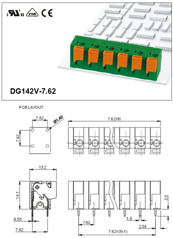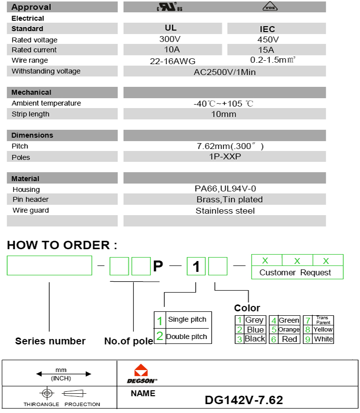 #113128 DG142V-7.62-05P 5P 180° 塑膠端子台 P:7.62mm