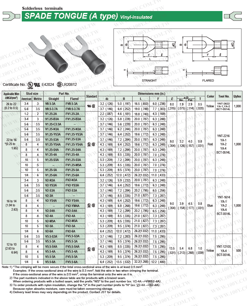 Y型端子 紅色 22-16AWG