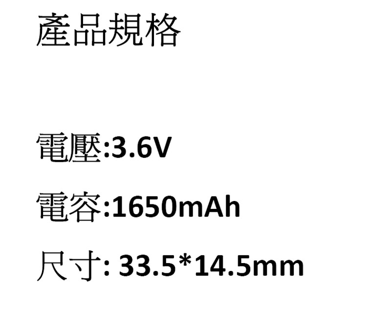 不可充鋰亞電池 2/3AA 3.6V/1650mAh