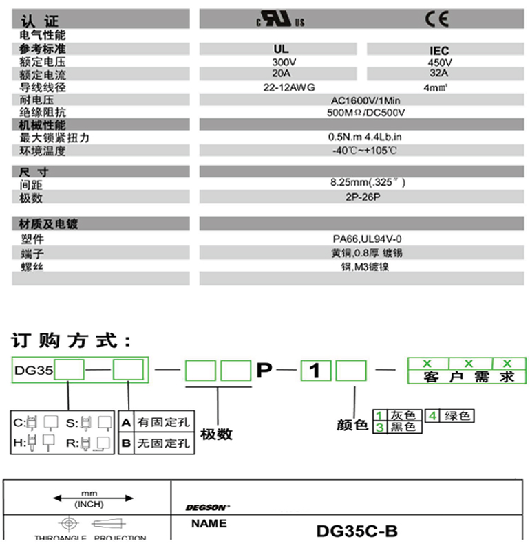 #113401 DG35C-B-8.25-3P 柵欄式接線端子3P P:8.25mm