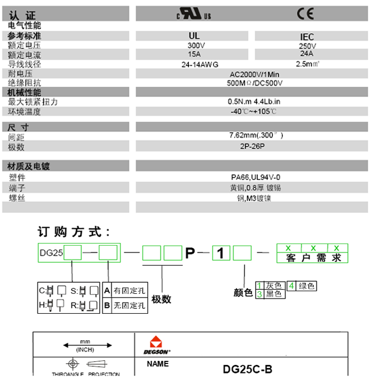 #113409 DG25C-B-7.62-6P 柵欄式接線端子6P P:7.62mm