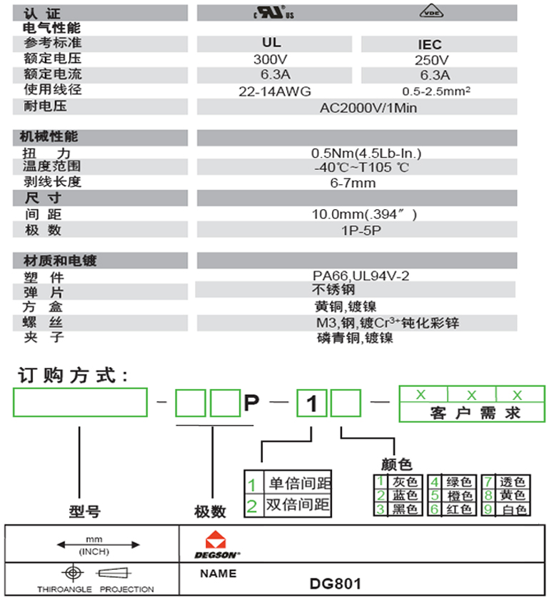 #113418 DG801-5P 貫通式端子台 5P P:10mm