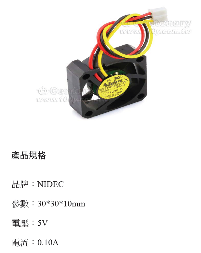 NIDEC 帶線風扇 DC5V 0.1A 30*30*10mm