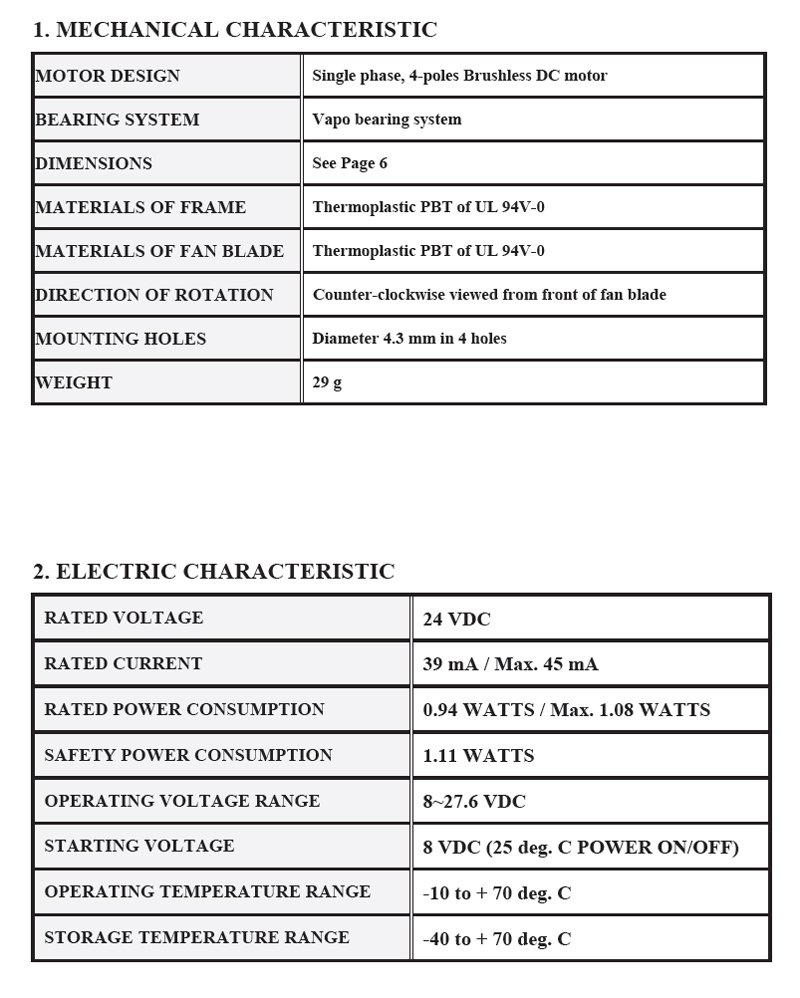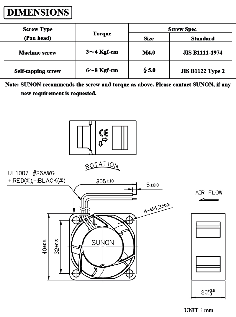 DC24V 帶線式風扇 39mA/Max 45mA 40*40*20mm