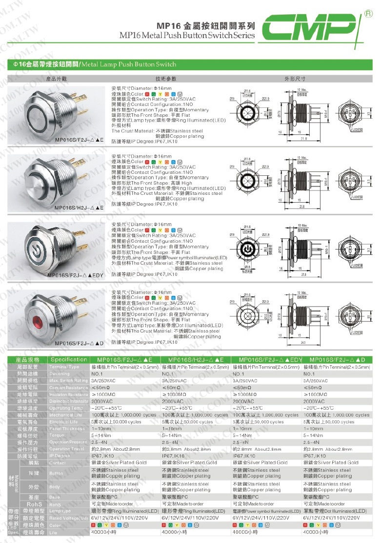 Φ16mm不銹鋼自復型焊線式 LED24V 藍色