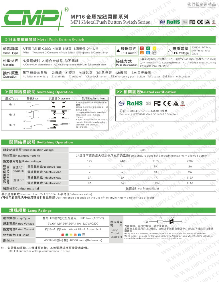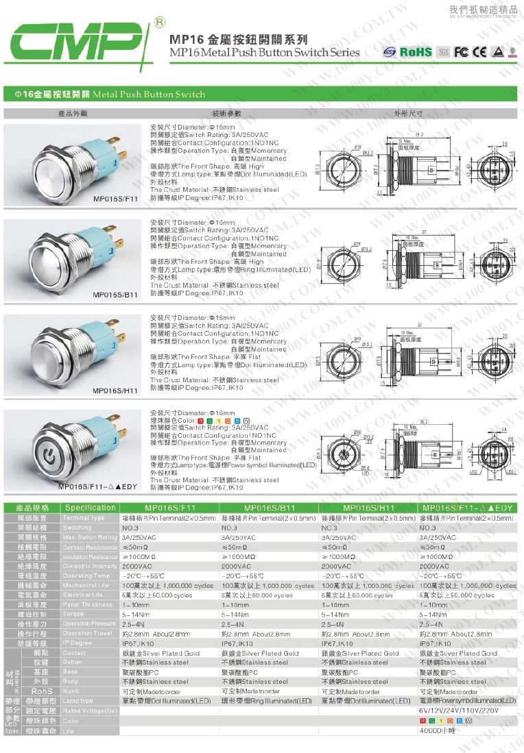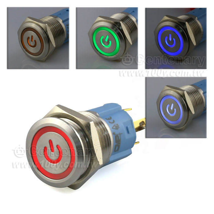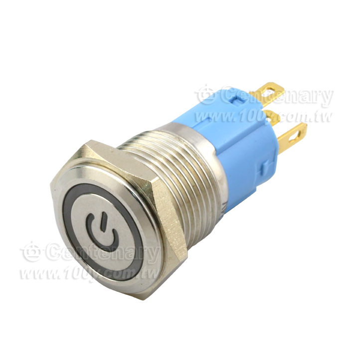 Φ16mm不銹鋼帶燈自鎖型 LED12V 綠色