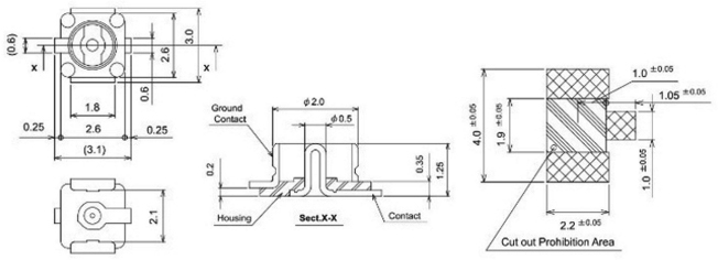 接口類型:SMA母頭 (外螺內孔)轉IPEX