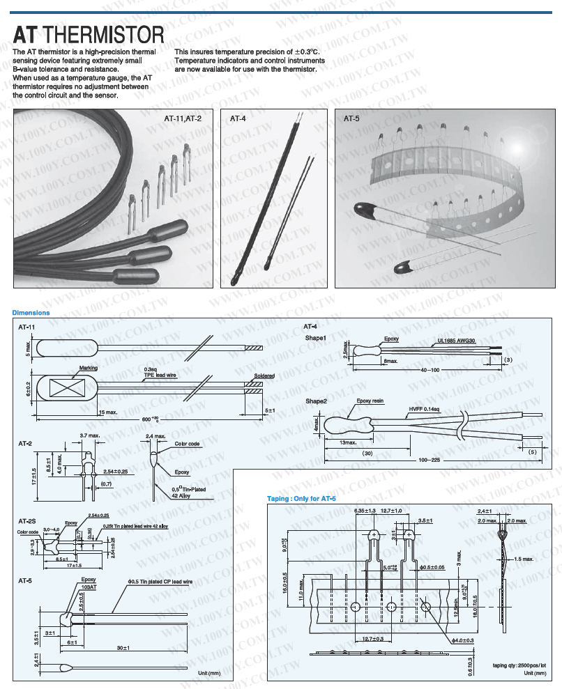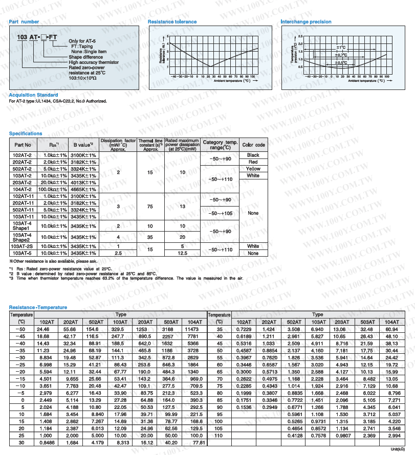NTC熱敏電阻 10Kohm ±1% (L:60cm)