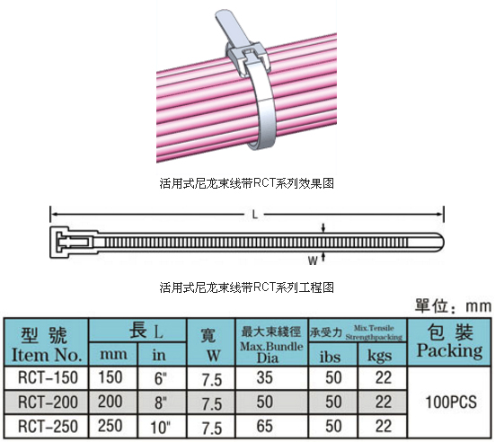 可退式 紮線帶 長:250mm 寬:7.5mm