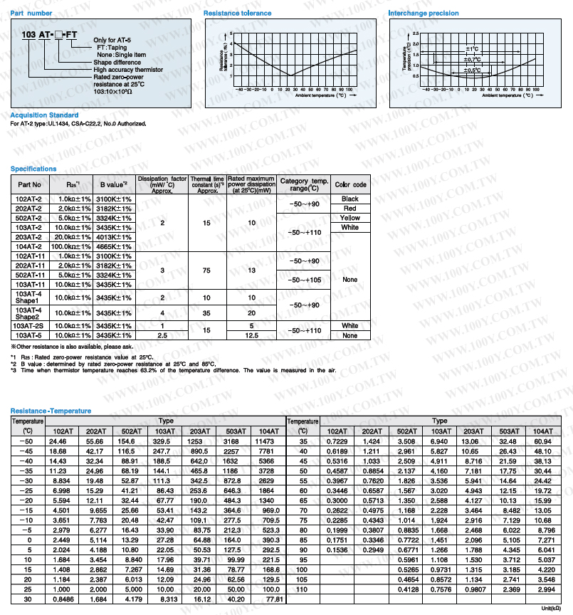 NTC熱敏電阻 20Kohm ±1%