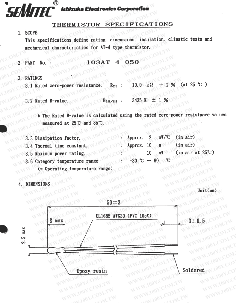 NTC熱敏電阻 10Kohm ±1%