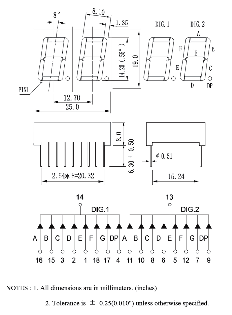 0.56"二字靜態掃瞄式綠色/共陰