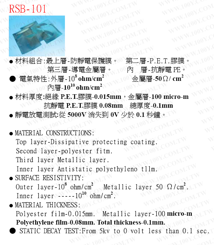 平口 抗靜電金屬隔離袋 (70*110mm)