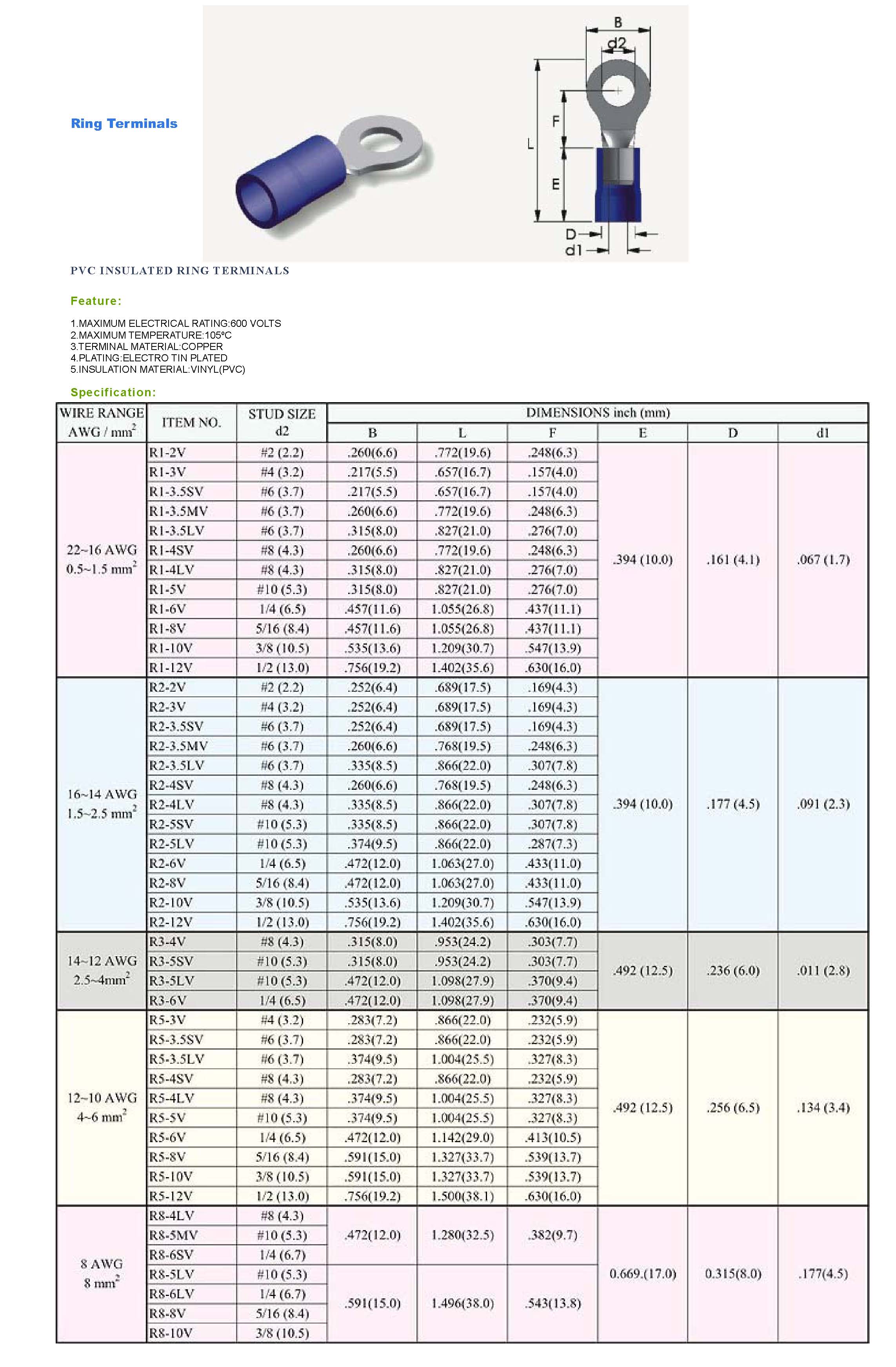 圓形焊接PVC絕緣端子 8AWG R8-6SBV