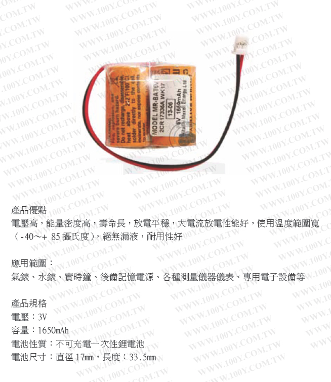PLC鋰電池 6V/1650mAh