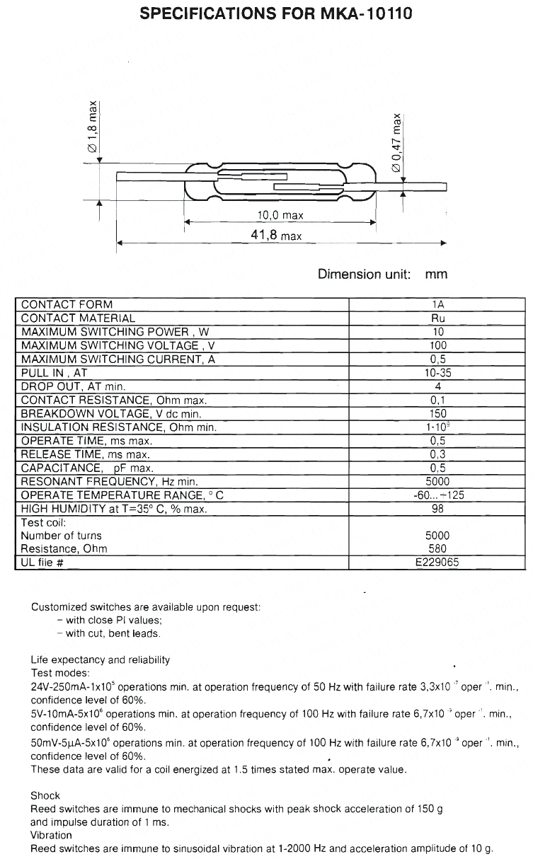 磁簧開關AT15-20 (MKA-10110 10mm金腳)