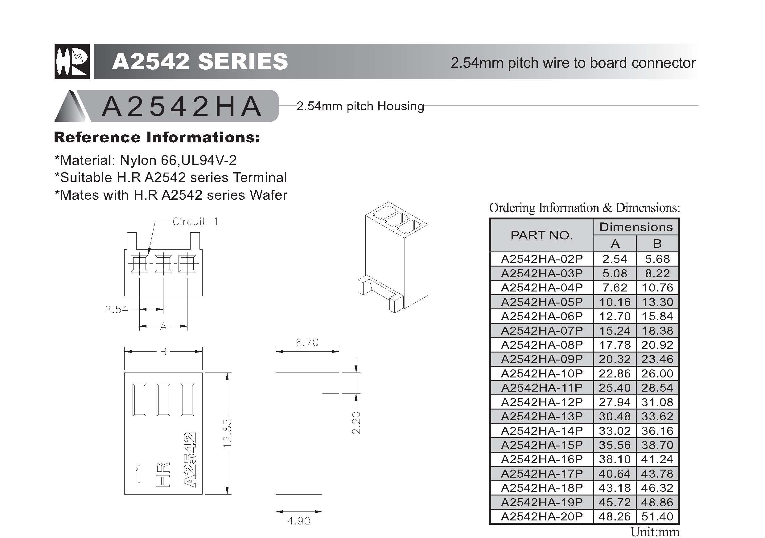 2.54mm 連接頭 5P 母頭
