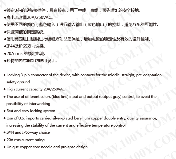 防水插頭 3P 黃色