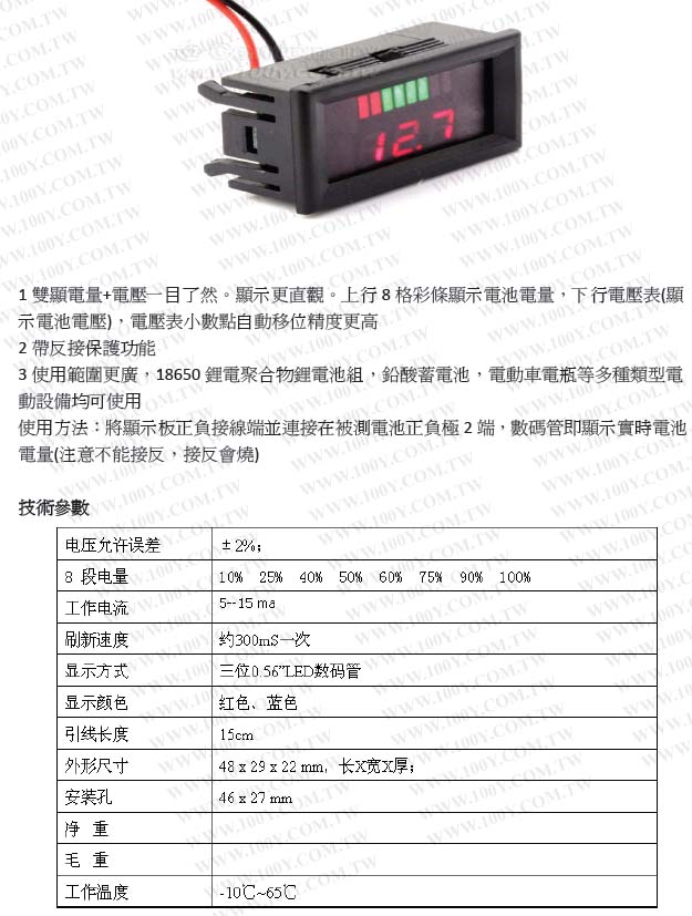 二線數顯電壓表 電動車電瓶表