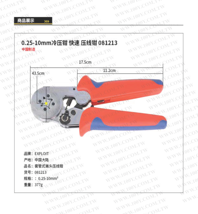 套管式端頭壓線鉗 0.25-10mm2(四邊形)