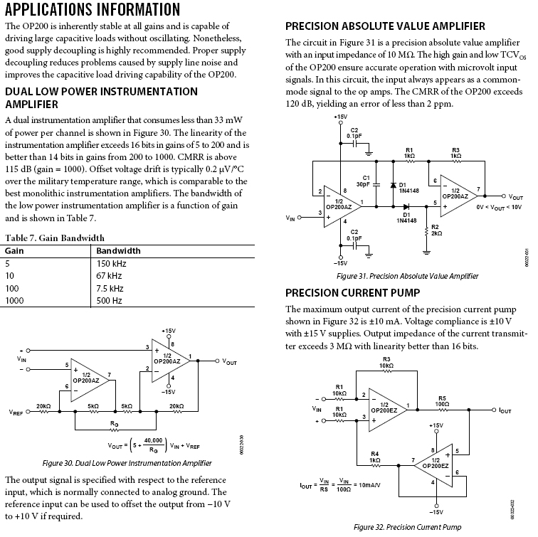 OP200是需要多個精密運算放大器和低功耗應用的理想選擇。關於四通道精密運算放大器,請參考OP400。