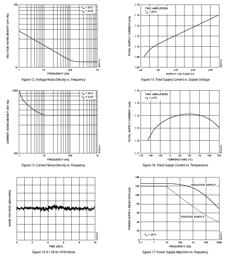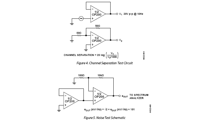 OP200的功耗很低,每個放大器耗用的電源電流低於725 μA。該雙通道OP200的總功耗不到單通道OP07的一半,而性能明顯優於這款工業標準運算放大器。OP200的電壓雜訊密度在1 kHz時為11 nV/√Hz,僅為大多數競爭器件的一半。