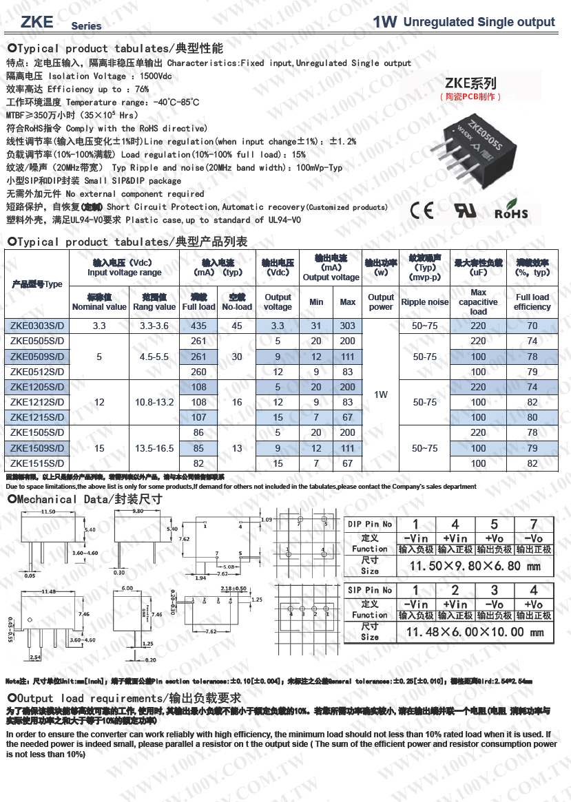 DC-DC電源隔離模組 1W DC5Vin;DC12Vout