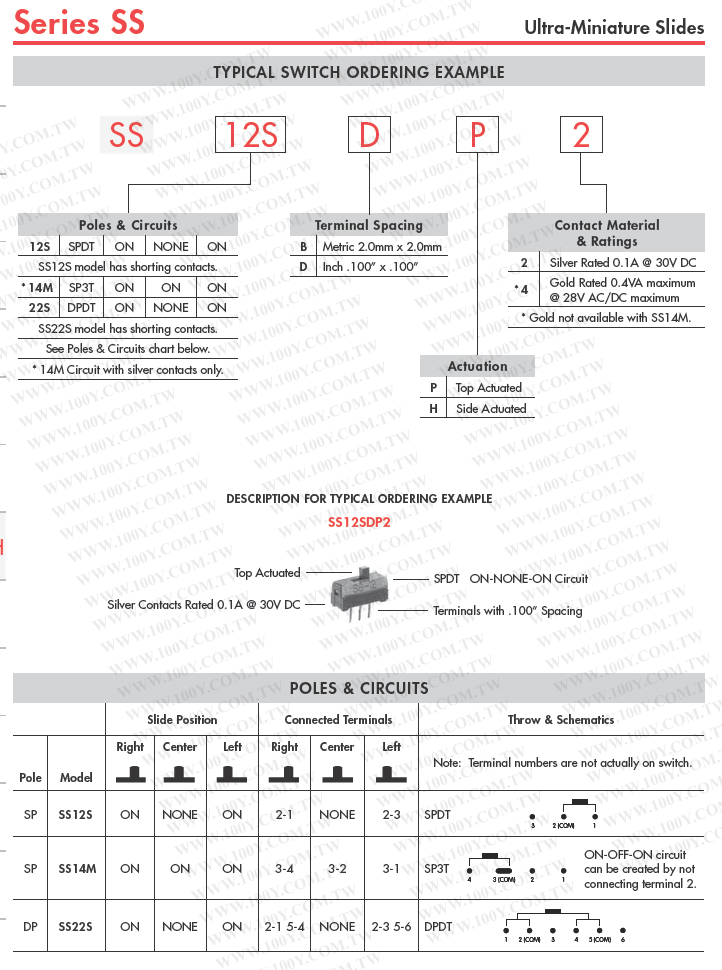 NKK_滑動開關 SP3T 100*100" 0.1A/30VDC