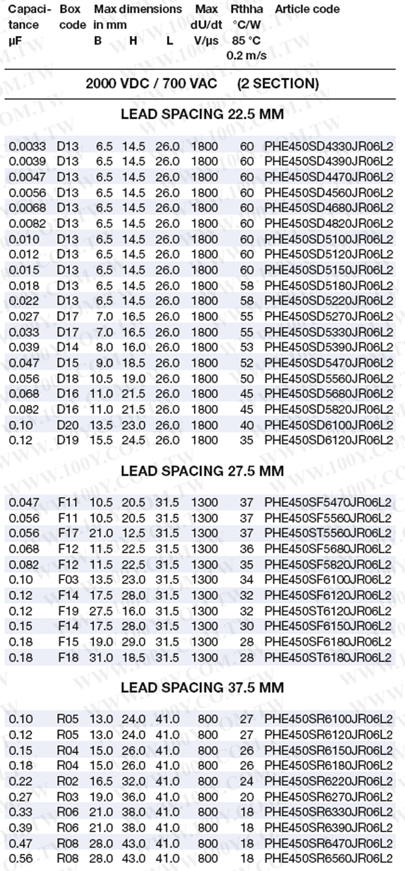 PHE450-1000pF/2000V ±5% Pitch15mm