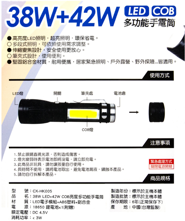 P50強光LED四核心手電筒