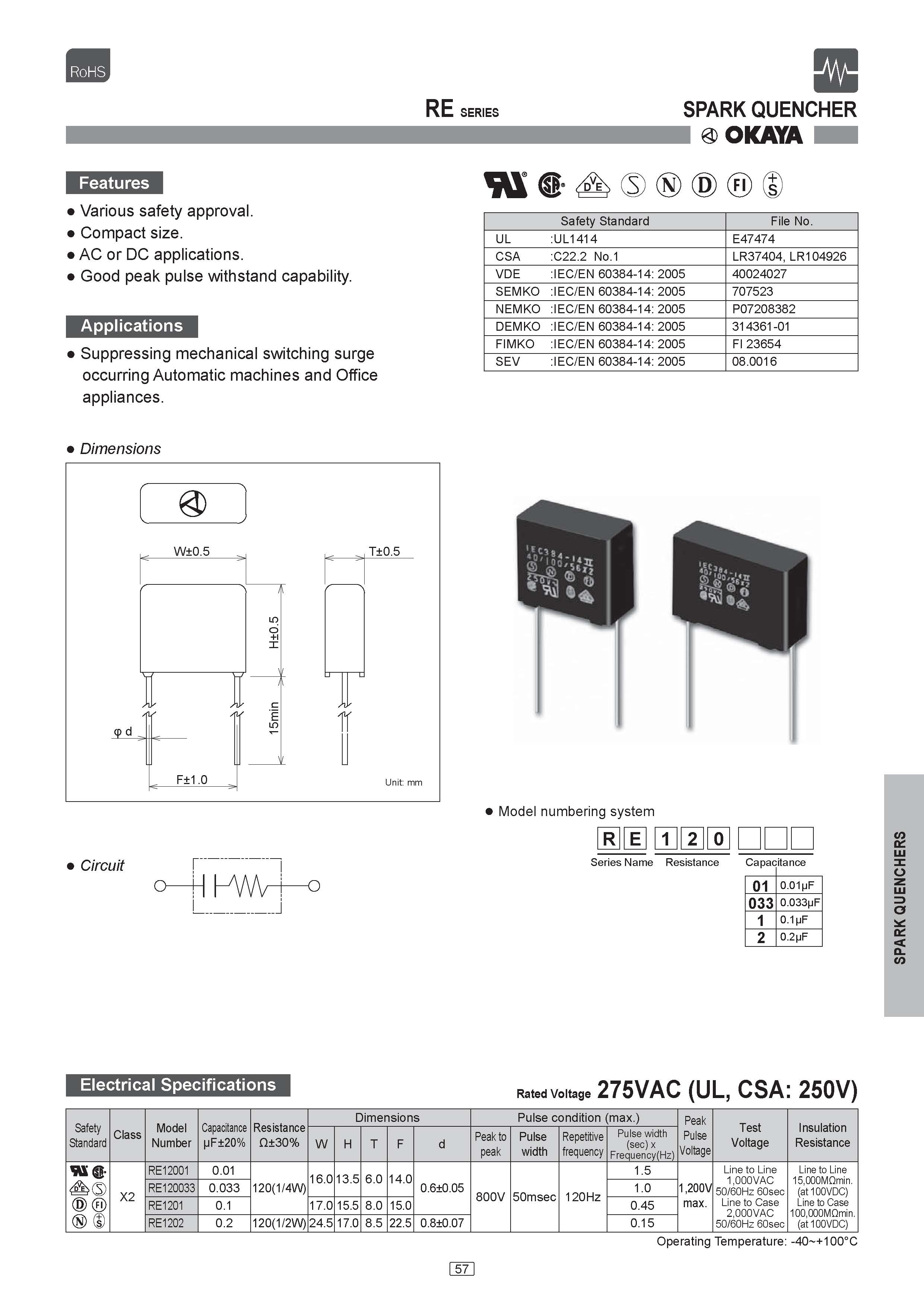 OKAYA 火花消除器 0.1uf+120Ω 275VAC