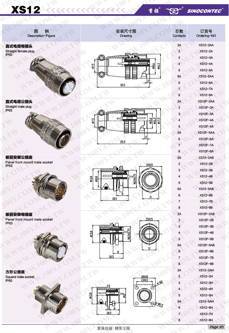 ψ12推拉卡扣式連接器2P 針鍍金 反裝