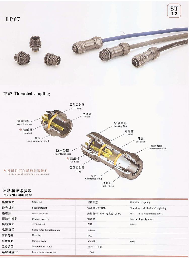 電纜插頭+對接插座