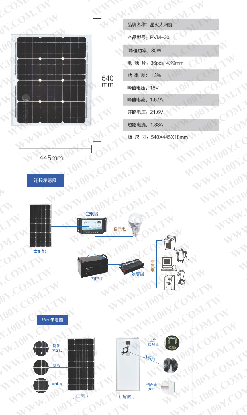 30W 單晶太陽能板 18V/1.67A 540*445*18MM