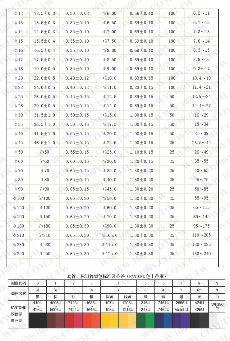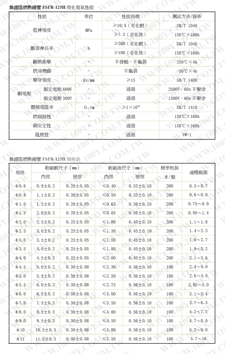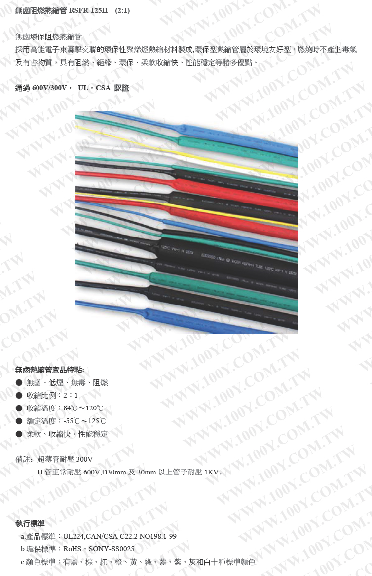 無鹵阻燃熱縮管 125℃ 600V (ROHS)