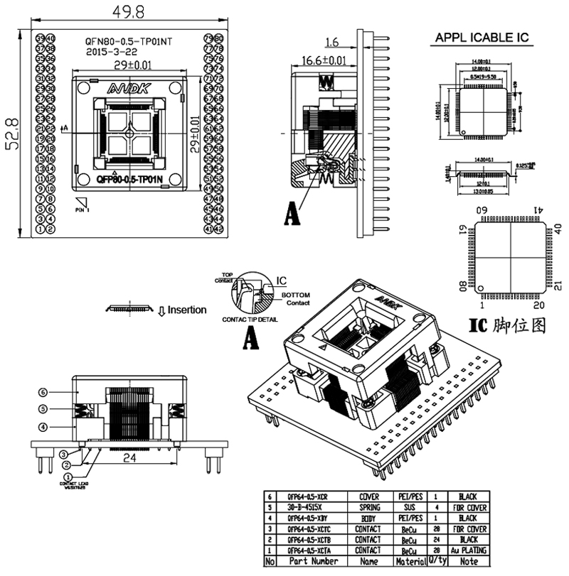 QFP-80P燒錄座單層板 P:0.5mm下壓式