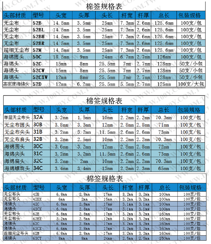 雙層無塵布扁頭 6.8*2.8*17mm 總長100mm