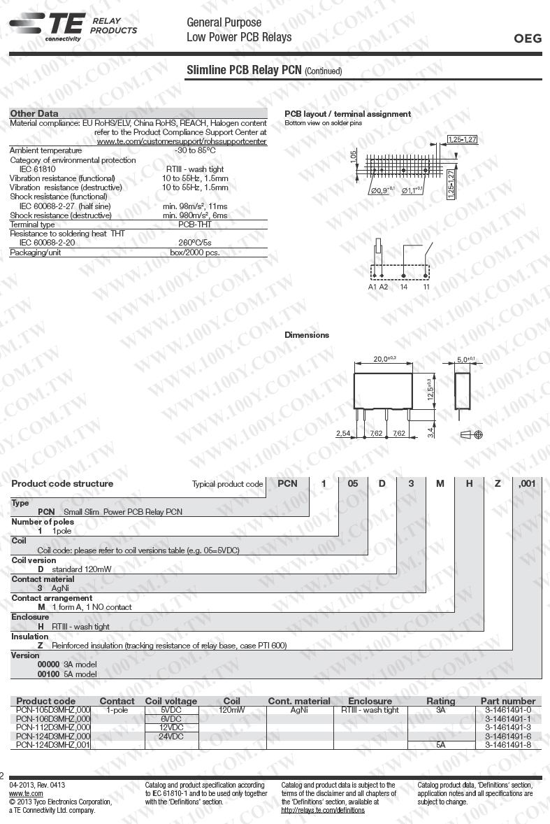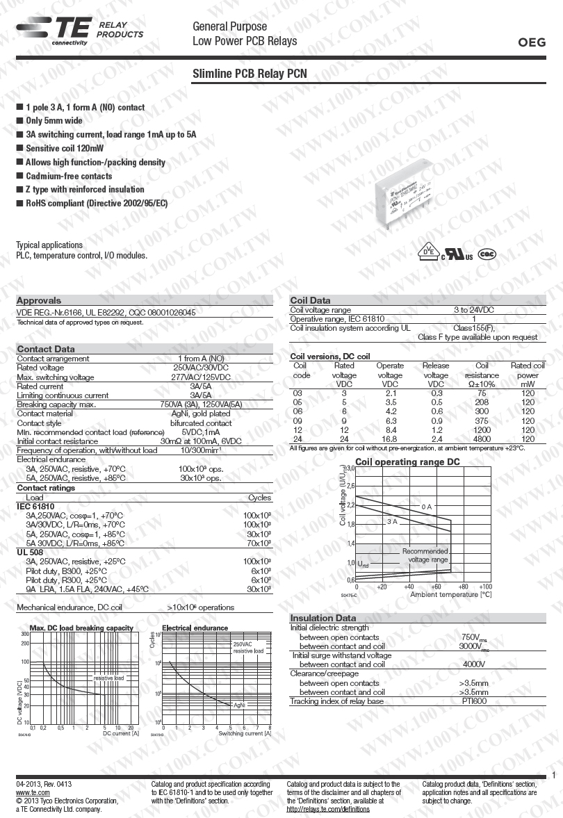 RELAY, SPST-NO, 250VAC, 30VDC, 3A