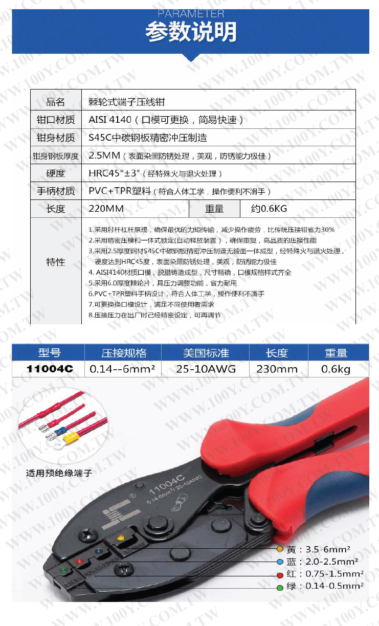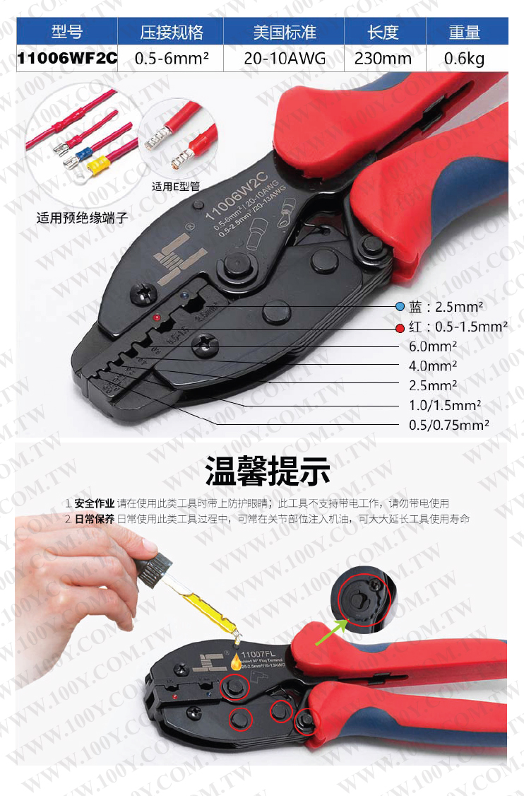 E型管、預絕緣端子兩用壓線鉗壓
