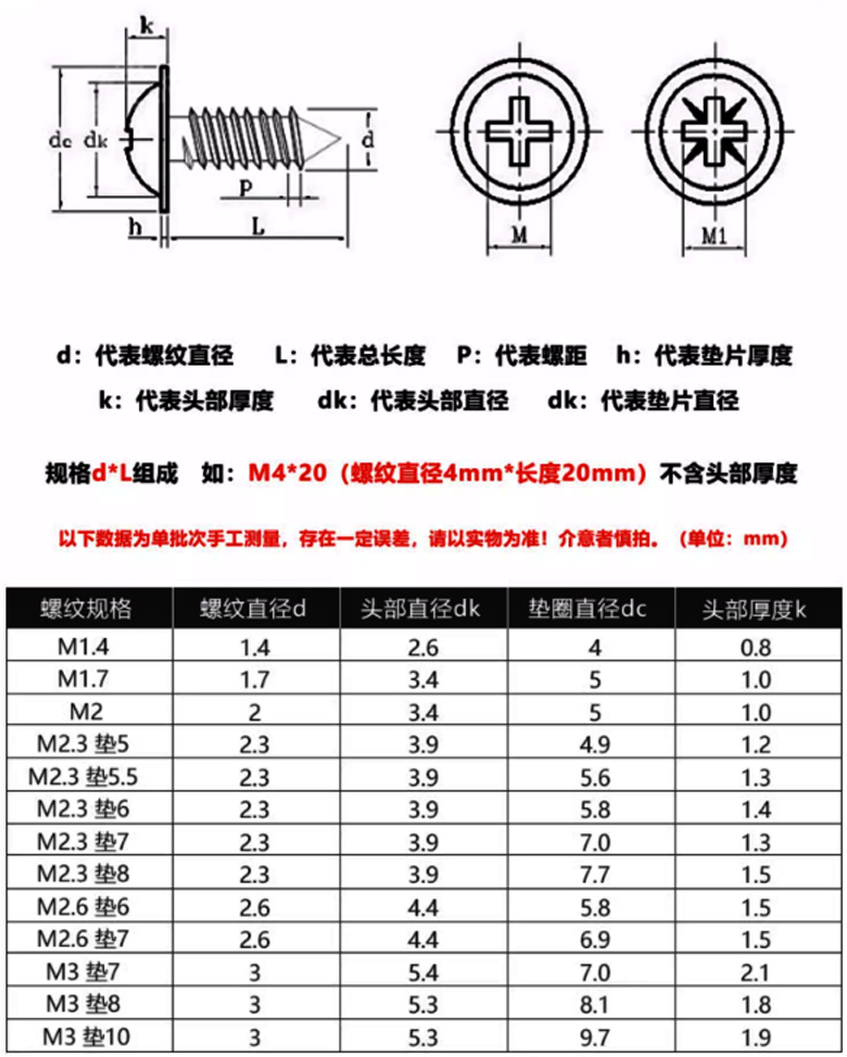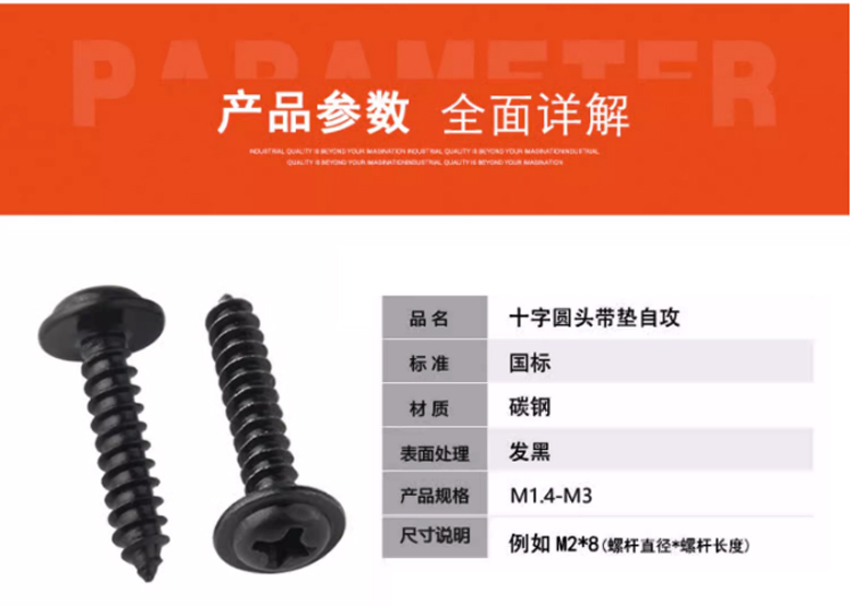 十字黑鋅圓頭尖尾帶墊自攻螺絲