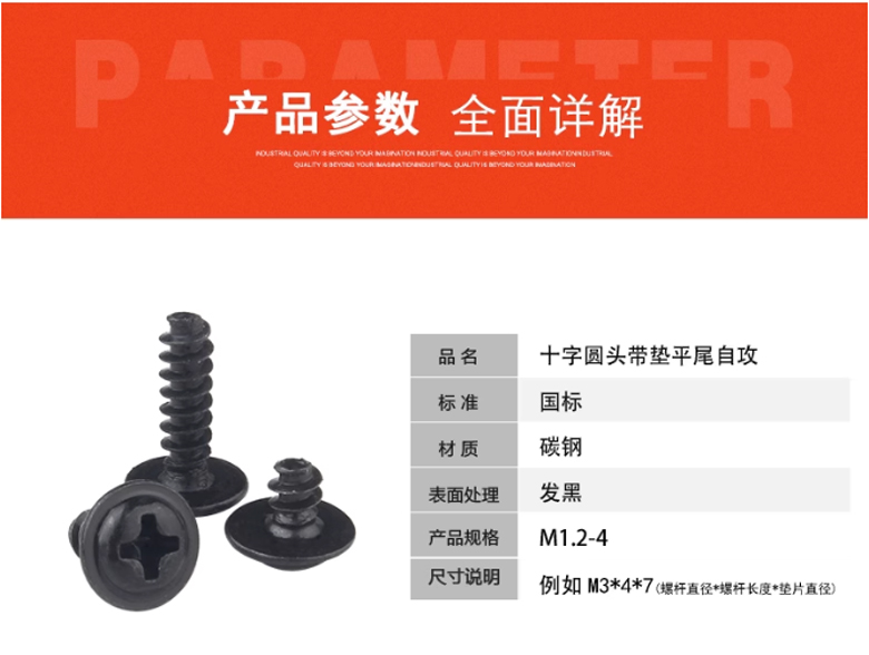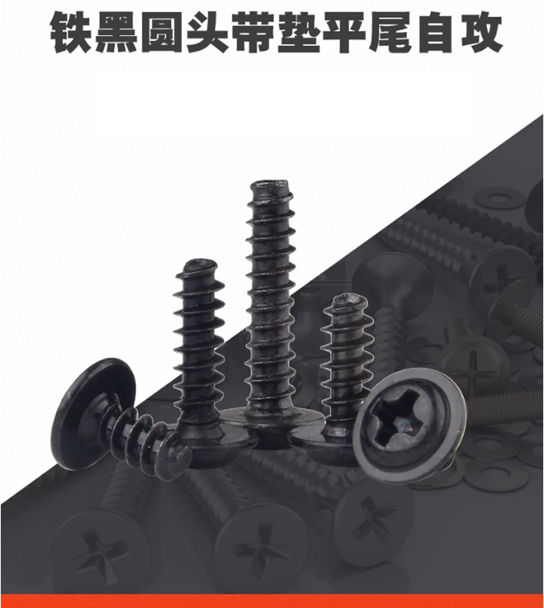 十字黑鋅圓頭平尾帶墊自攻螺絲
